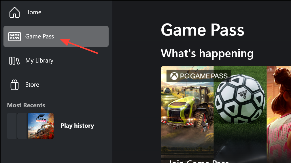 Schritt 1:Navigieren Sie zum Abschnitt Game Pass in Ihrer Xbox -Konsole, der Xbox -App auf Mobilgeräte oder der Xbox -App unter Windows PC.