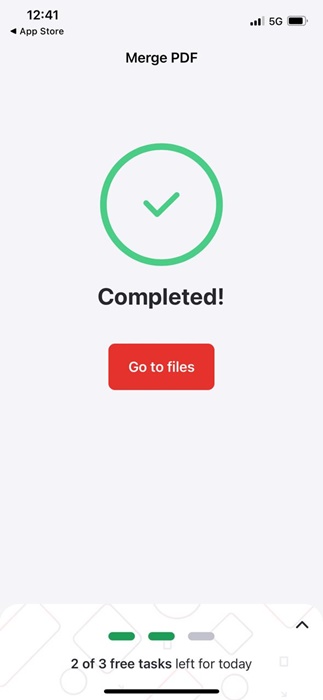 7. Warten Sie, bis die App Ihre ausgewählten PDF-Dateien zusammenführt. Öffnen Sie nach dem Zusammenführen die Dateien-App und navigieren Sie zuiLovePDF > Ausgabeum die Dateien anzusehen.