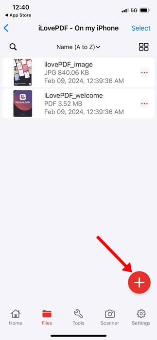 3. Tippen Sie aufPlus-Symbolin der unteren rechten Ecke und wählen SieDateien.