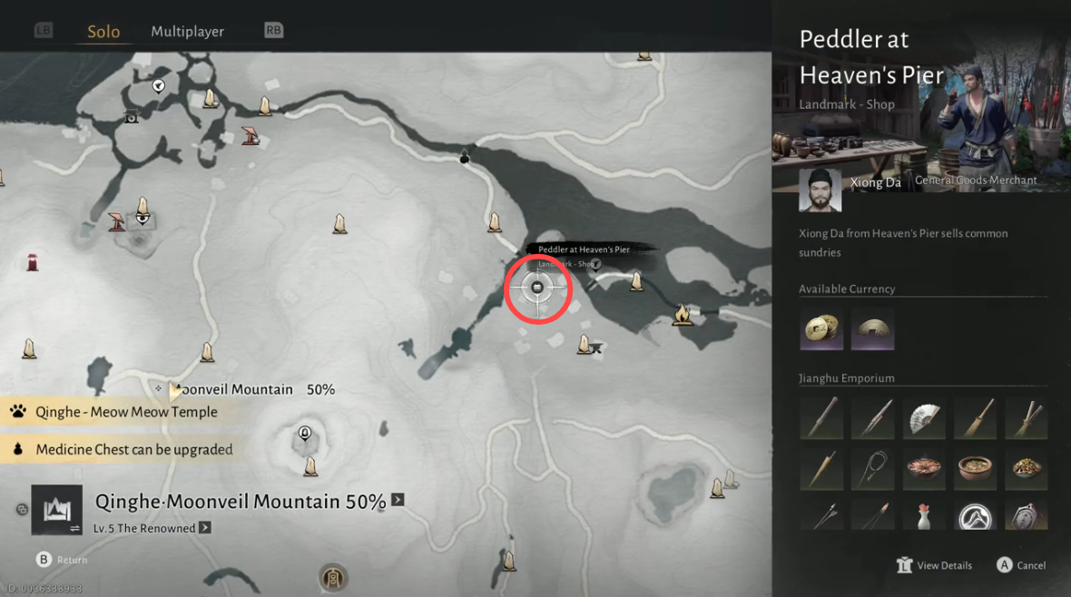 - Xiong Da (Heaven's Pier, Qinghe) – Verkauft bis zu 99 Feuerpfeile pro Tag (jeweils 200 Münzen).