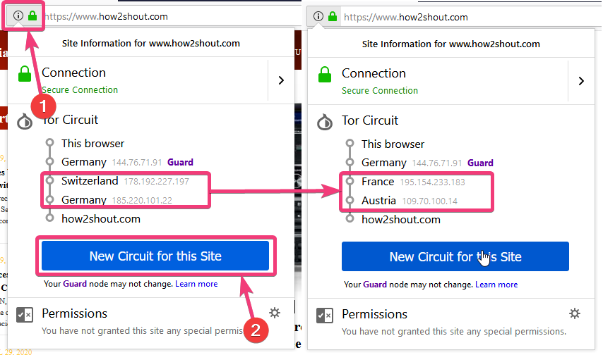 Beginnen wir also ohne weitere Verzögerung damit, wie Sie die Schaltung für einen bestimmten Tab im Tor-Browser ändern können.