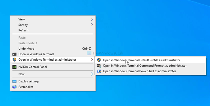 Windows-TerminalErmöglicht das Öffnen der Eingabeaufforderung, Windows PowerShell usw. in einem Fenster. Wenn Sie hinzufügen möchtenÖffnen Sie das Windows-Terminal als AdministratorOption im Kontextmenü, hier erfahren Sie, wie Sie das tun können. Obwohl Sie das finden könnenIm Windows-Terminal öffnenStandardmäßig können Sie im Kontextmenü eine weitere Option hinzufügen, um dieselbe App mit Administratorrechten auszuführen.