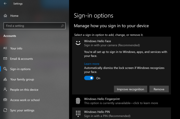 Wenn dies der Fall ist und Sie die automatische Schließung des Sperrbildschirms aktivieren oder deaktivieren möchten, wenn Windows erkennt, dass Ihr Gesicht geöffnet istWindows-Einstellungen.