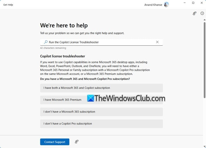 7] Führen Sie die Fehlerbehebung für die Copilot-Lizenz aus