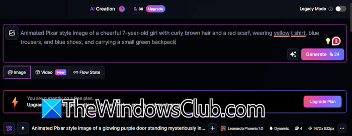 Wählen Sie das Bild-KI-Tool von Leonardo AI und dann das erforderliche Modell für die Bildgenerierung aus. Phoenix ist das neueste Modell zur Bilderzeugung. Wählen Sie das Seitenverhältnis für Ihre Bilder aus und fügen Sie dann die kopierte Eingabeaufforderung ein. Schlagen Sie dieErzeugenTaste. Leonardo AI generiert im kostenlosen Plan für jede Bildaufforderung 4 Bilder. Sie können das beste Bild ansehen und herunterladen. Wenn Ihnen die Bilder nicht gefallen, können Sie weitere Bilder generieren.
