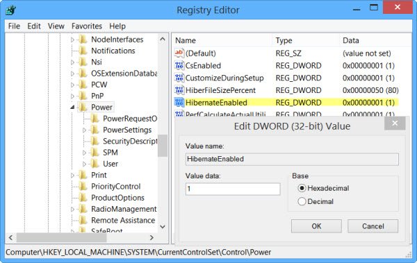 HKEY_LOCAL_MACHINE\SYSTEM\CurrentControlSet\Control\Power