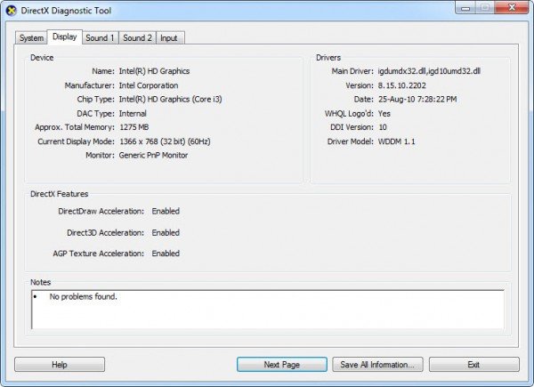 1] Führen Sie das DirectX-Diagnosetool (DxDiag) aus.
