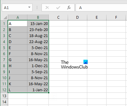 - Wählen Sie den gesamten Spaltenbereich zusammen mit den Zeilen aus.