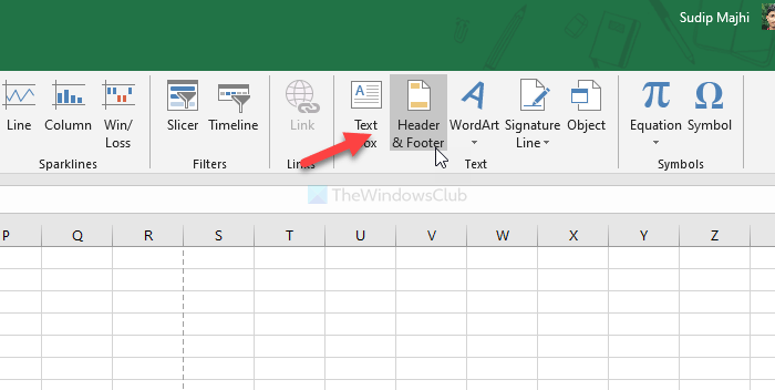 Zunächst müssen Sie die Tabelle mit Microsoft Excel öffnen. Wenn Sie die Kopf- und Fußzeile vor dem Erstellen einer Tabellenkalkulation einfügen möchten, erstellen Sie eine schwarze Tabellenkalkulation, indem Sie Excel öffnen. Wechseln Sie anschließend zumEinfügenRegisterkarte aus demHeimTab und finden Sie herausTextAbschnitt. Hier erhalten Sie eine Option namensKopf- und Fußzeile.