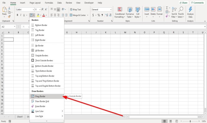 Option eins ist das KlickenRahmen zeichnenin der Dropdown-Liste „Grenzen“.