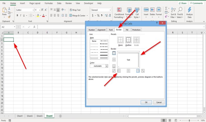 2] So entfernen Sie Ränder aus einer Zelle in einem Excel-Arbeitsblatt