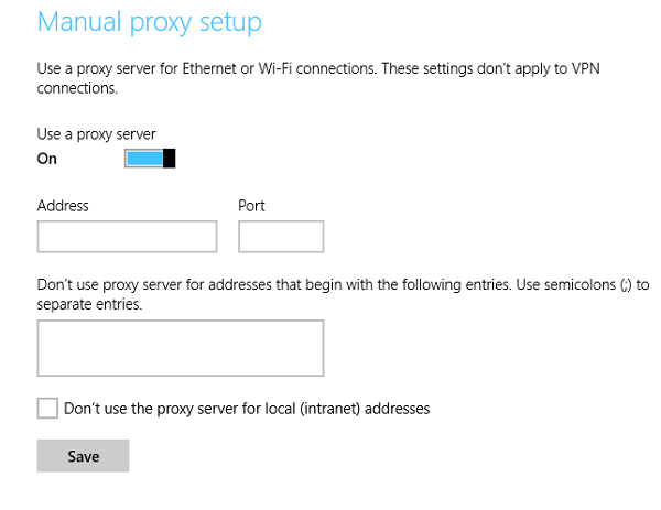 Microsoft scheint hier über Windows 11/10/8.1 eine alternative Option angeboten zu haben – anders als in Windows 8. Eine der größten Ergänzungen zu den Windows-Einstellungen und dem Upgrade sind die Proxy-Einstellungen. Dies erleichtert die Konfiguration automatischer und manueller Proxys in Windows 11/10 erheblich.
