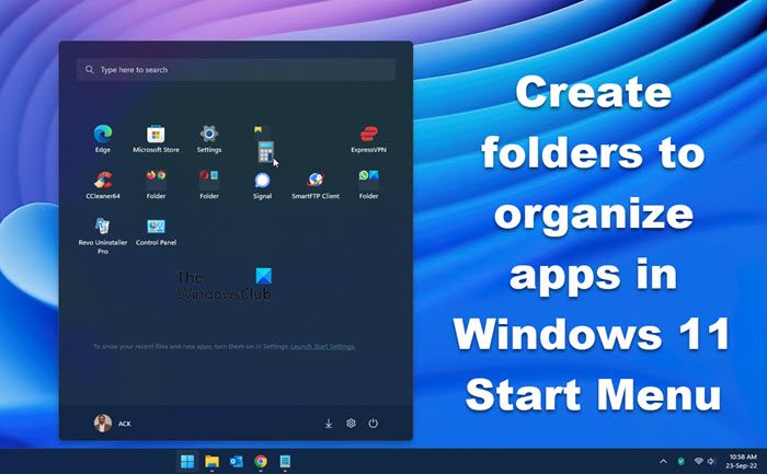 Wenn Sie Windows 11-Benutzer sind und einen Ordner im Startmenü erstellen möchten, befolgen Sie die folgenden Vorschläge: