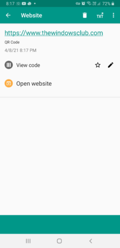 Ich habe den QR-Code mit einer Android-App gescannt, um zu prüfen, ob er funktioniert. Was ich nach dem Scannen des Codes erhalten habe, ist im folgenden Screenshot dargestellt.