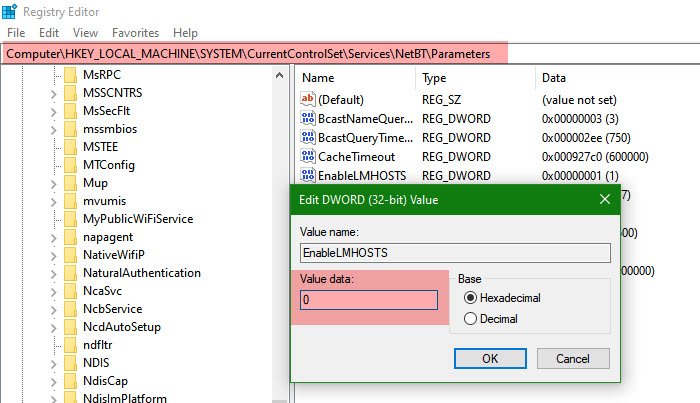HKEY_LOCAL_MACHINE\SYSTEM\CurrentControlSet\Services\NetBT\Parameters