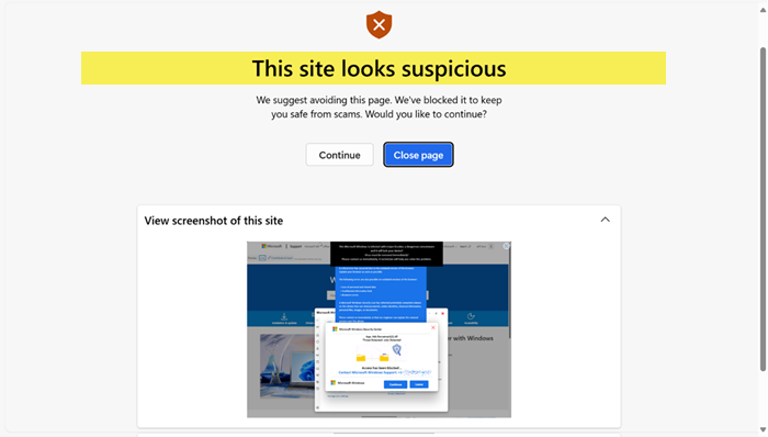Microsoft Edgehat eine Sicherheitsfunktion namensScareware-Blocker. Es soll Benutzer vor irreführenden oder betrügerischen Websites schützen, die Panikmache nutzen, um sie zum Herunterladen schädlicher Software oder zum Bezahlen unnötiger Dienste zu verleiten.
