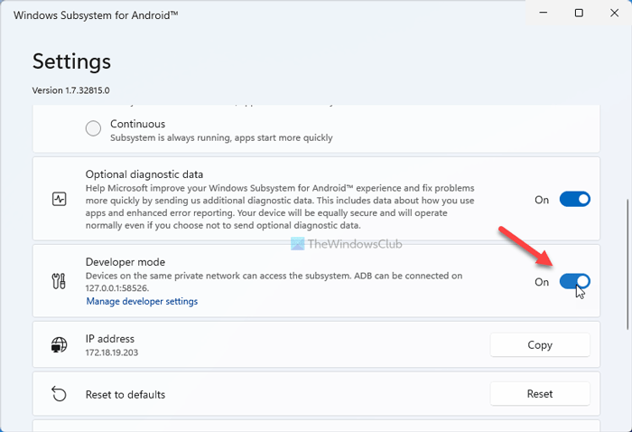 3] Aktivieren Sie den Entwicklermodus in WSA