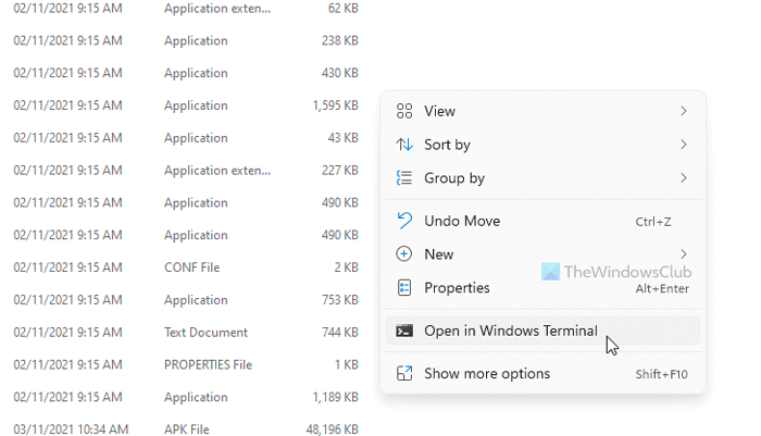 Sie müssen das Windows-Terminal im Ordner „Platform-Tools“ öffnen und sicherstellen, dass die Eingabeaufforderungsinstanz geöffnet ist. Doppelklicken Sie dazu aufPlattform-ToolsOrdner, den Sie im zweiten Schritt dieses Tutorials extrahiert haben. Klicken Sie nach dem Öffnen mit der rechten Maustaste auf eine leere Stelle und wählen Sie die ausIm Windows-Terminal öffnenOption.