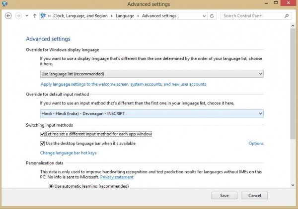 Sie können die Eingabemethode auch manuell in Ihrem ' ändern.Einstellungen' wie folgt:
