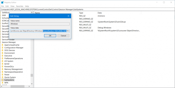 Computer\HKEY_LOCAL_MACHINE\SYSTEM\CurrentControlSet\Control\Session Manager\SubSystems