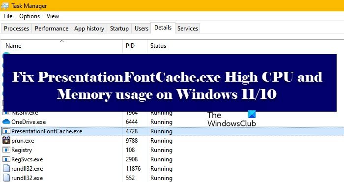 Einige Benutzer beschweren sich, dass ein Prozess aufgerufen wurdePresentationFontCache.exeverbraucht hohe Ressourcen auf seinen Windows 11/10-Computern. Ihren Angaben zufolge stellten sie bei der Untersuchung fest, dass PresentationFontCache.exe eine hohe CPU- und Speicherauslastung in ihrem Task-Manager verursacht. In diesem Artikel erfahren Sie, wie Sie das Problem beheben können.