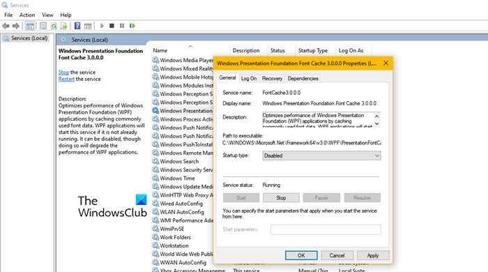- Beenden Sie den Windows Presentation Foundation-Schriftcachedienst