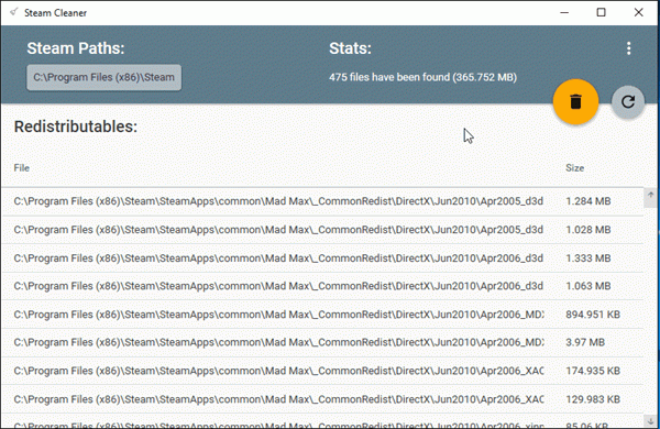 DampfreinigerWie der Name schon sagt, können Sie damit alle von Steam und anderen beliebten Spieleplattformen hinterlassenen Daten löschen. Die Freeware kann in Sekundenschnelle viele ungenutzte und entfernbare Daten löschen und Speicherplatz sparen. Sie müssen es nur ausführen und es erkennt automatisch den Steam-Pfad und zeigt die Dateien an, die gelöscht werden können, sowie die Größe dieser Dateien. Klicken Sie einfach auf die Schaltfläche „Löschen“ und Sie sind fast fertig. Steam Cleaner läuft bei diesen Dateien ziemlich schnell, da sie in wenigen Sekunden verschwinden.
