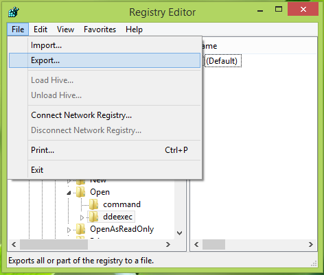 Exportieren Sie zunächst dieddeexecSchlüssel. Klicken Sie mit der rechten Maustaste darauf und wählen Sie ausExport. Dadurch können Sie es wiederherstellen, indem Sie darauf doppelklicken.