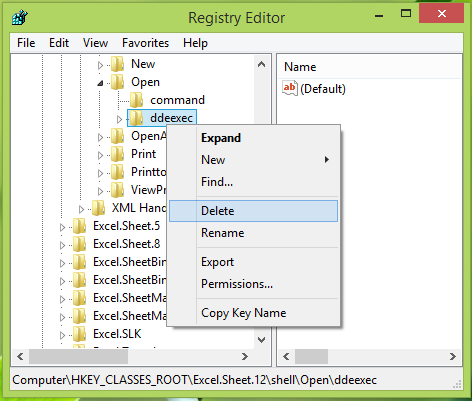 HKEY_CLASSES_ROOT\Excel.Sheet.12\shell\Open\ddeexec