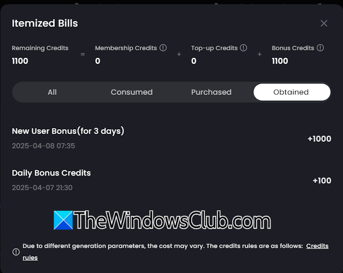 Die Erstellung eines 5-sekündigen Videos kostet 30 Credits und ein 8-sekündiges Video 60 Credits. Das bedeutet, dass Sie täglich 2 KI-Videos mit einer Dauer von 5 Sekunden und ein KI-Video mit einer Dauer von 8 Sekunden erstellen können.