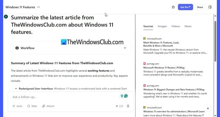Bei webbasierten Abfragen werden die verwendeten Quellen zitiert. Sie können auf diese Zitate (im rechten Bereich) klicken, um die erhaltenen Informationen zu überprüfen.