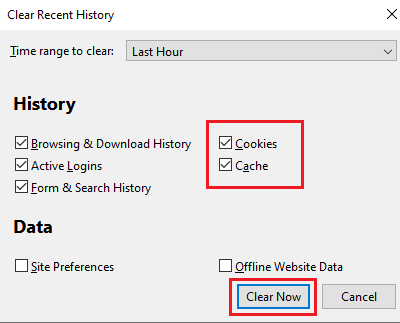 3] Löschen Sie die Cookies und den Cache für den Firefox-Browser
