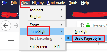 Möglicherweise haben Sie den Stil der Webseite auf „Kein Stil“ eingestellt. In einer solchen Situation könnte das diskutierte Problem auftreten. Dies liegt daran, dass für die Webseiten kein Standardstil vorgegeben wurde. Sie können es in „Einfacher Seitenstil“ ändern.