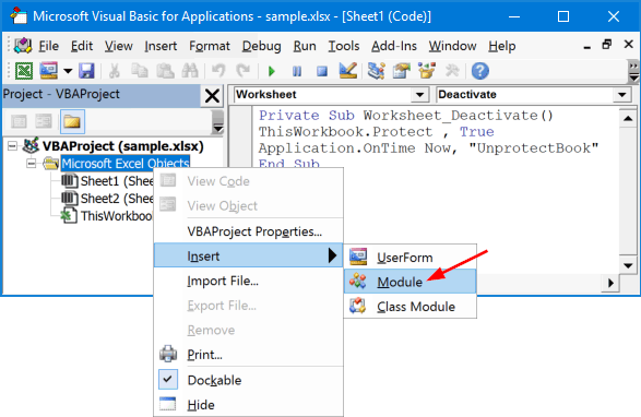 Μέθοδος 2: Προστατέψτε ένα συγκεκριμένο φύλλο από τη διαγραφή χρησιμοποιώντας VBA