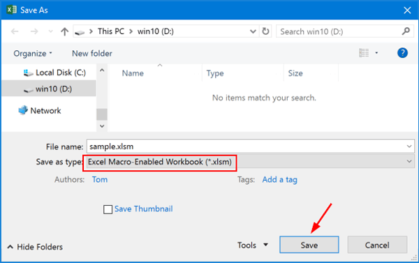 - ΣτοΑποθήκευση ωςπαράθυρο διαλόγου, επιλέξτε "Βιβλίο εργασίας με δυνατότητα Excel-Macro (*.xlsm)» και κάντε κλικΕκτός.