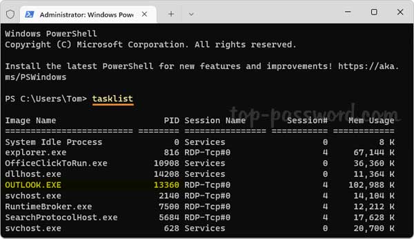 Ανοίξτε το Windows Terminal ως διαχειριστής και, στη συνέχεια, εκτελέστε τολίστα εργασιώνεντολή για προβολή μιας λίστας προγραμμάτων και υπηρεσιών που εκτελούνται στο σύστημά σας. Πρέπει να γράψετε το όνομα της εφαρμογής που δεν ανταποκρίνεται.
