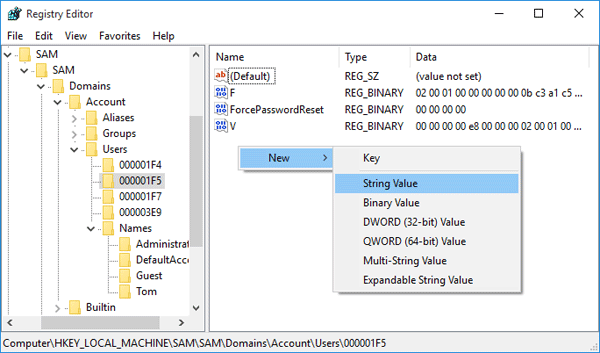 Κάντε δεξί κλικ στην κενή περιοχή στο δεξιό παράθυρο και, στη συνέχεια, επιλέξτεΝέος->Τιμή συμβολοσειράς.