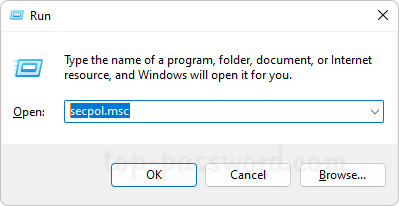 Πατήστε τοWindowsπλήκτρο +Rμαζί για να ανοίξετε το παράθυρο διαλόγου Εκτέλεση και, στη συνέχεια, εισάγετεsecpol.mscκαι κάντε κλικΕΝΤΑΞΕΙ.