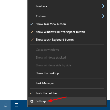 Μέθοδος 4: Κάντε δεξί κλικ στη γραμμή εργασιών για να ανοίξετε την εφαρμογή Ρυθμίσεις