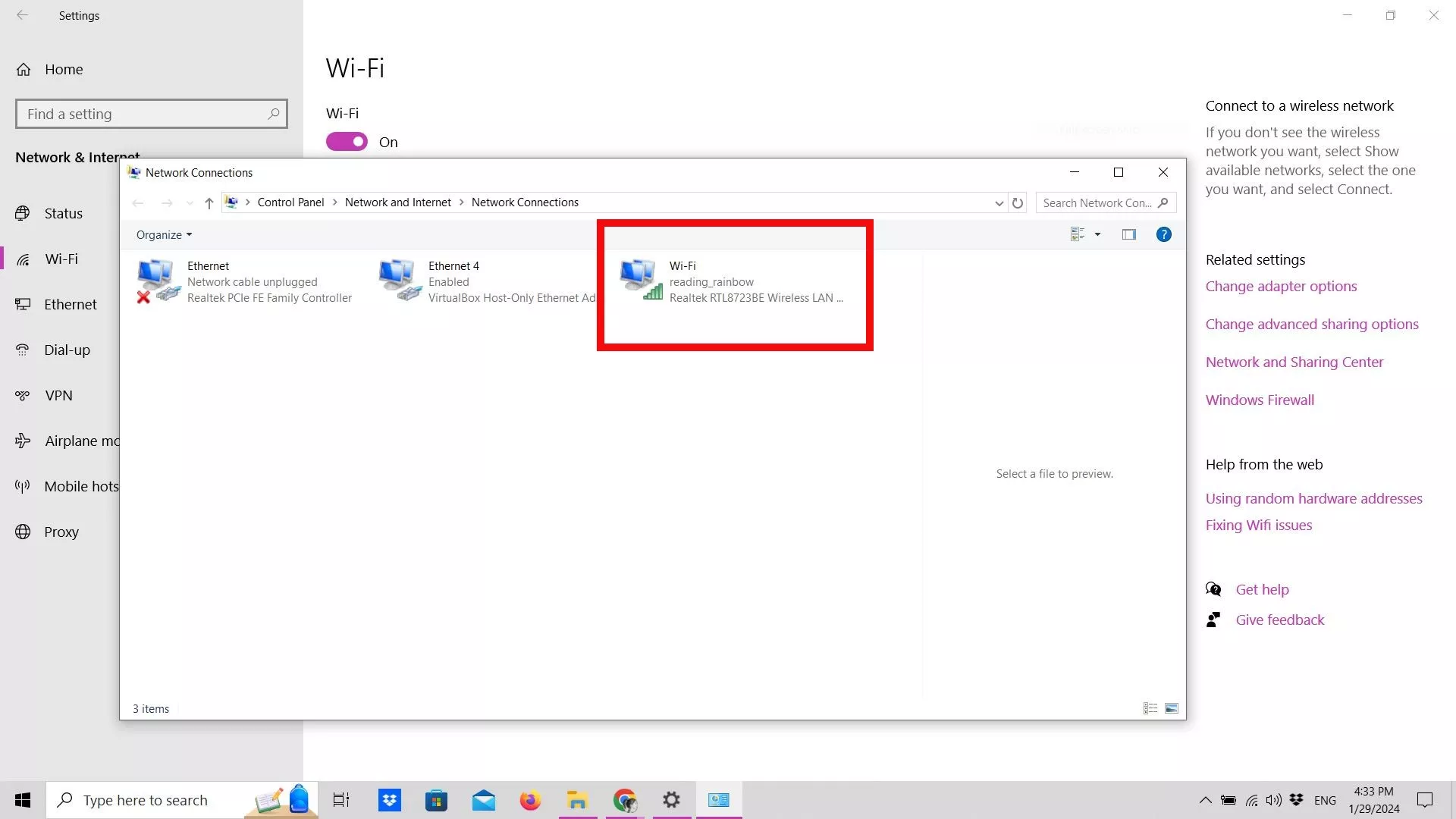 Βήμα 3: Στις ρυθμίσεις Wi-Fi, επιλέξτε Αλλαγή επιλογών προσαρμογέα.