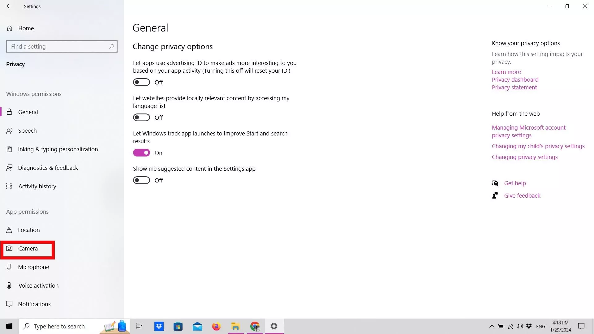 Βήμα 2: Επιλέξτε Κάμερα στο αριστερό μενού.