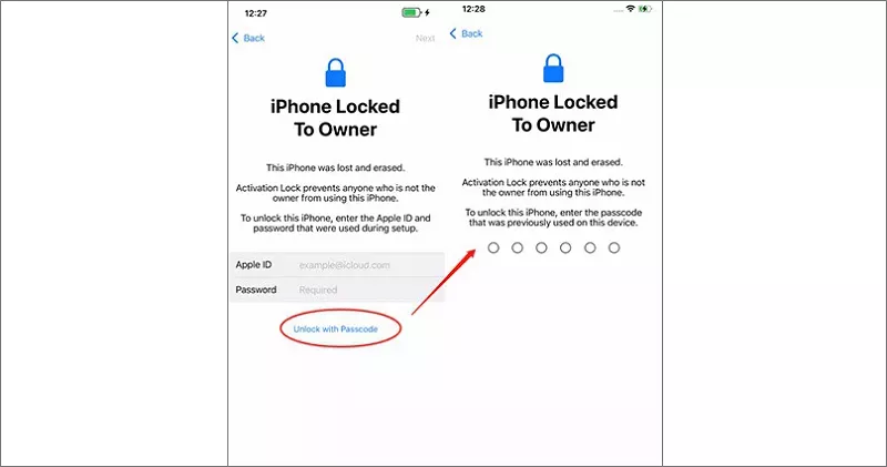 Επιλογή κωδικού πρόσβασης, μπορείτε εύκολα να αφαιρέσετε το iCloud Activation Locke. Για να το κάνετε αυτό, πατήστεΞεκλείδωμα με