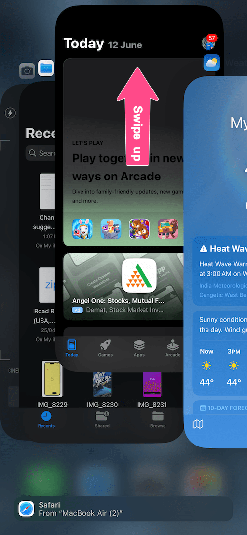 Εφαρμογές που χρησιμοποιήθηκαν πρόσφατα στο iPhoneΟμοίως, μπορείτε να χρησιμοποιήσετε δύο δάχτυλα για να καθαρίσετε τις εφαρμογές φόντου.