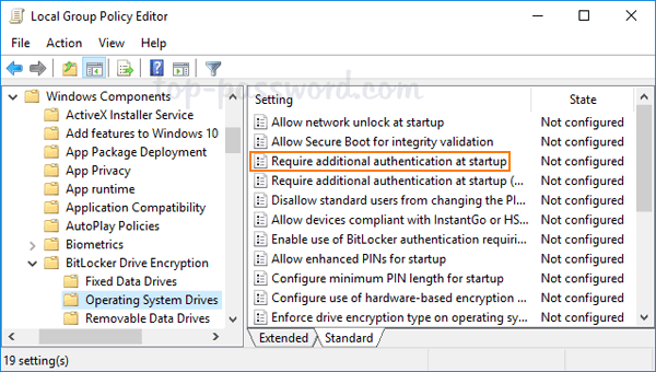 - Μεταβείτε στην Πολιτική τοπικού υπολογιστή > Διαμόρφωση υπολογιστή > Πρότυπα διαχείρισης > Στοιχεία Windows > Κρυπτογράφηση μονάδας δίσκου BitLocker > Λειτουργικά συστήματα. Κάντε διπλό κλικ στο "Απαιτείται πρόσθετος έλεγχος ταυτότητας κατά την εκκίνηση".