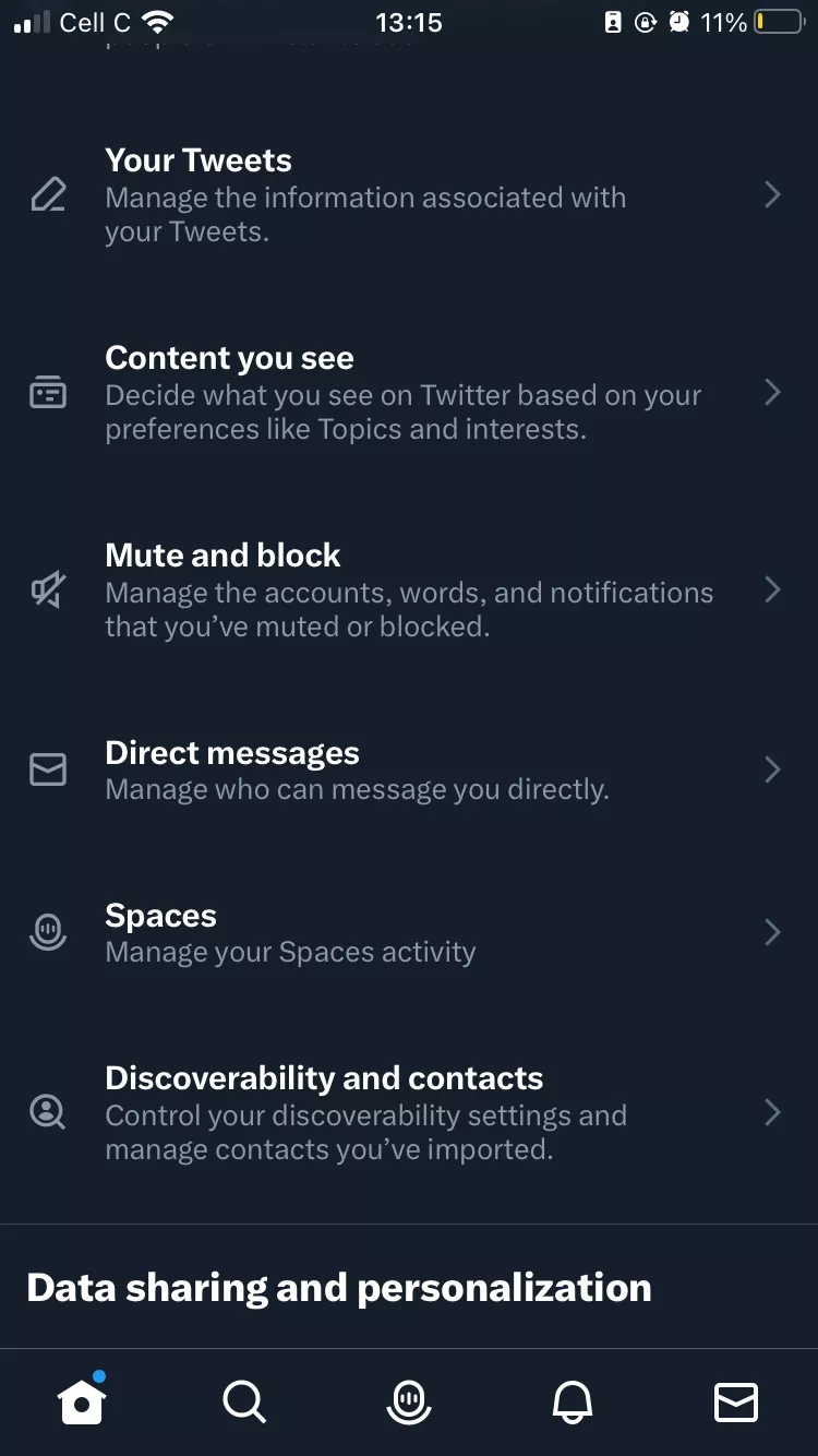 - Ανοίξτε την εφαρμογή Twitter και πατήστε το δικό σαςεικονίδιο προφίλ > Ρυθμίσεις και υποστήριξη > Ρυθμίσεις και απόρρητο > Απόρρητο και ασφάλεια