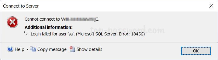 Εάν λάβετε το μήνυμα σφάλματος "Login Failed for User (Microsoft SQL Server, Error: 18456)", είναι πιθανό η μέθοδος ελέγχου ταυτότητας του διακομιστή SQL να μην έχει ρυθμιστεί σωστά. Πρέπει να χρησιμοποιήσετε τη δεύτερη μέθοδο που περιγράφεται σε αυτό το άρθρο για να ενεργοποιήσετε τον έλεγχο ταυτότητας μεικτής λειτουργίας.