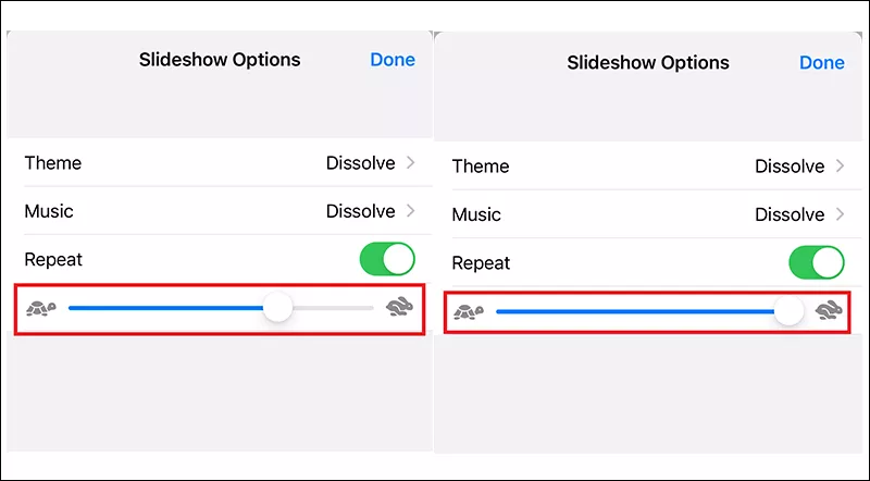 Επαναλάβετε την προβολή διαφανειών:Ενεργοποιήστε το iPhone Photo SlideshowΕπαναλαμβάνωεπιλογή για συνεχή βρόχο παρουσίασης του iPhone.