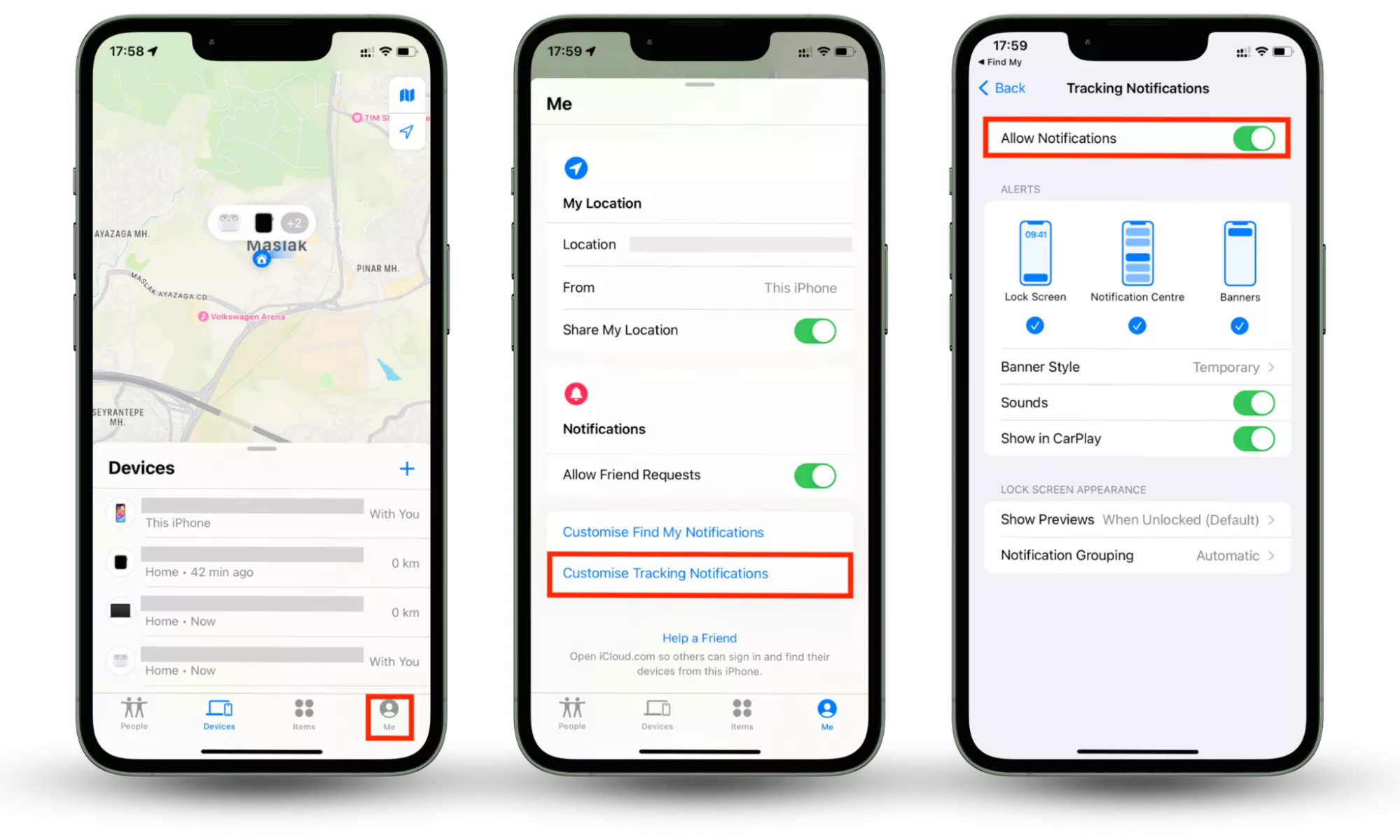 Ακολουθήστε τα παρακάτω βήματα για να ενεργοποιήσετε τις ειδοποιήσεις παρακολούθησης συσκευής στο iPhone σας: