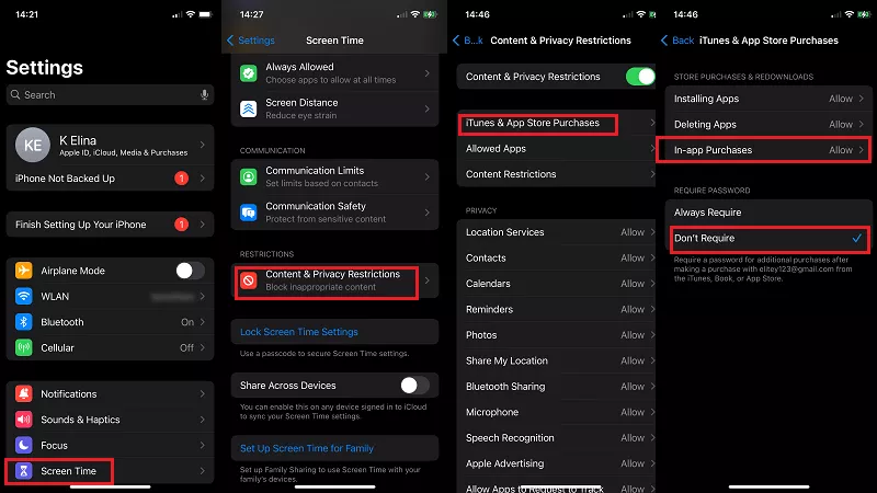 Βήμα 3:ΕπιλέγωΜην Απαιτείταιστη λίστα Απαιτείται κωδικός πρόσβασης. Στη συνέχεια, πατήστε Αγορές εντός εφαρμογής,