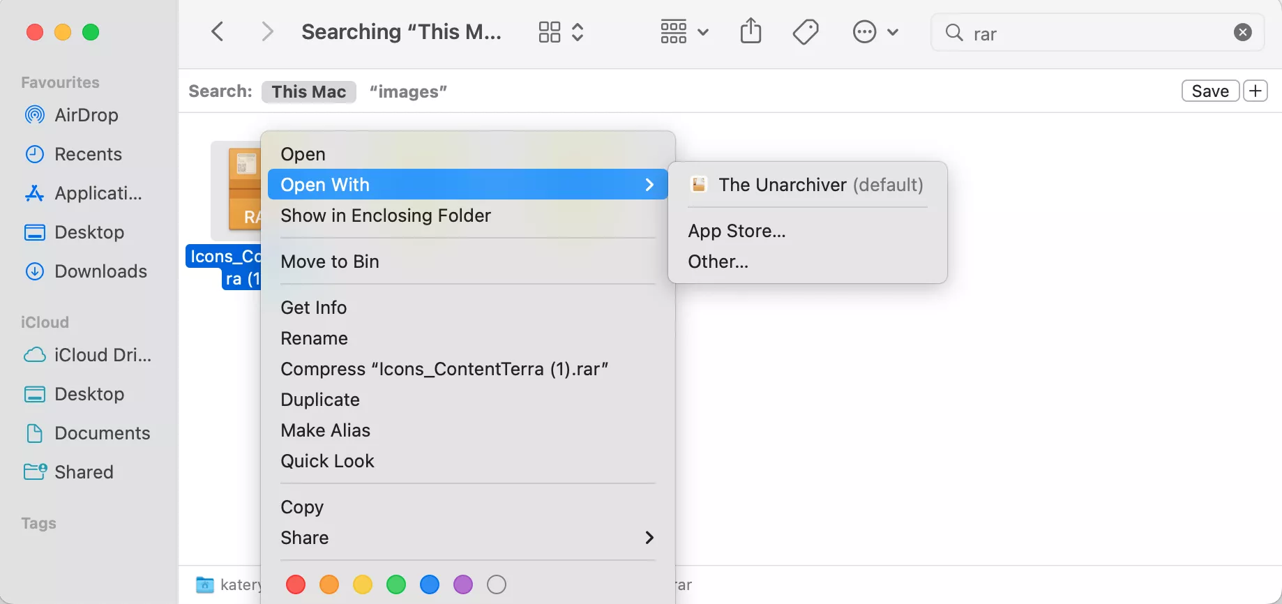 9. ΠήγαινεΑρχείο > Άνοιγμα με > Το Unarchiver